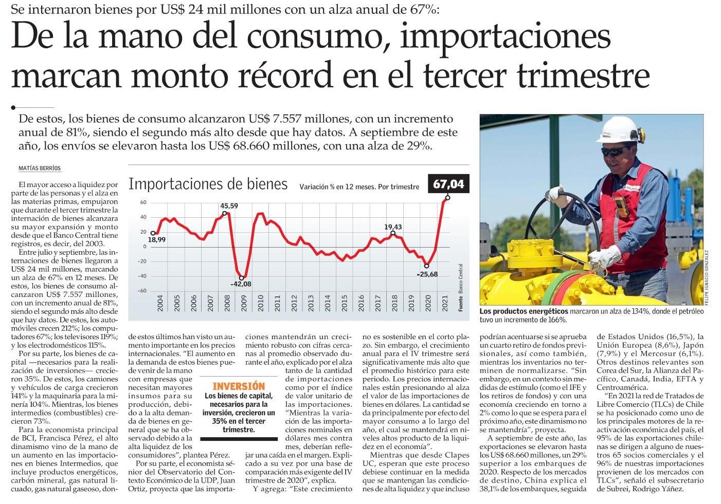 De la mano del consumo, importaciones marcan monto récord en el tercer trimestre