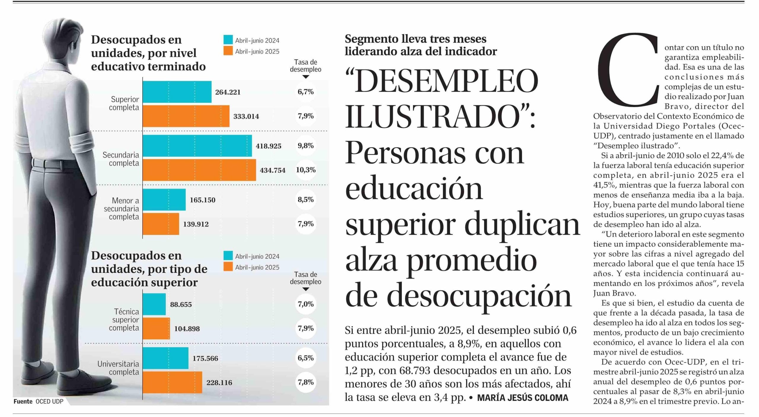 El Mercurio destacó Informe del OCEC-UDP que advirtió alza del desempleo entre personas con educación superior completa