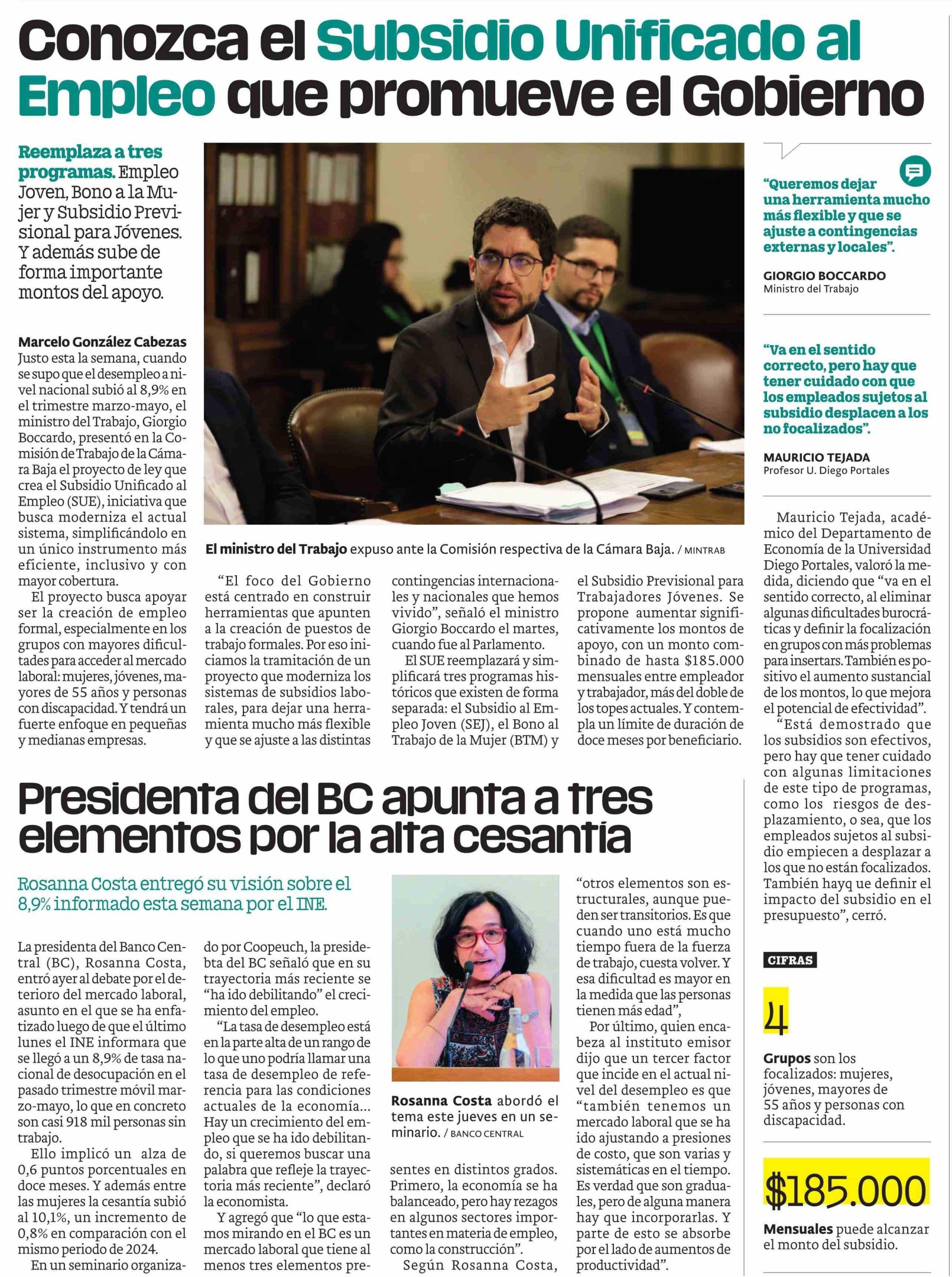 Mauricio Tejada valoró nuevo Subsidio Unificado al Empleo en nota publicada por Publimetro