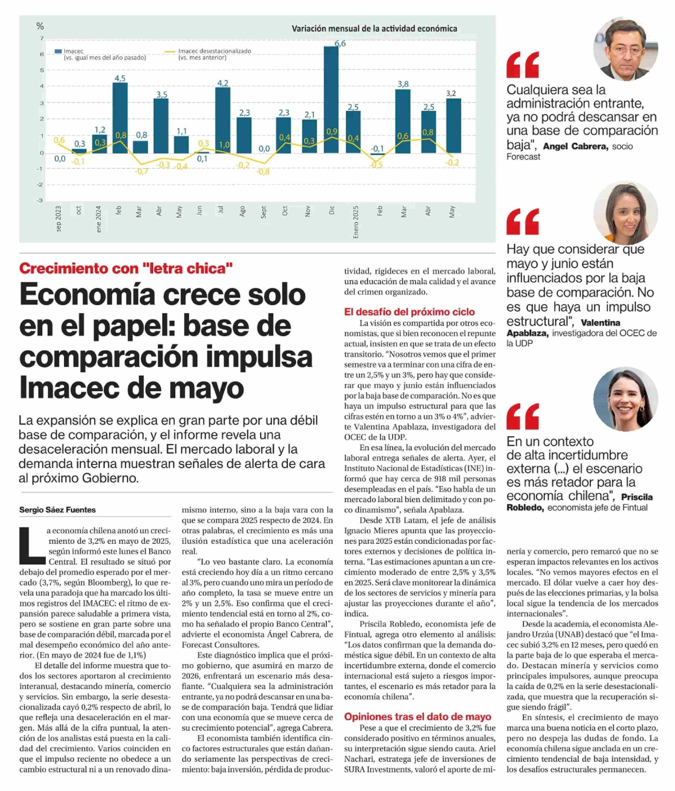 Valentina Apablaza (OCEC-UDP) analizó crecimiento del Imacec en La Segunda y advirtió sobre fragilidad del mercado laboral