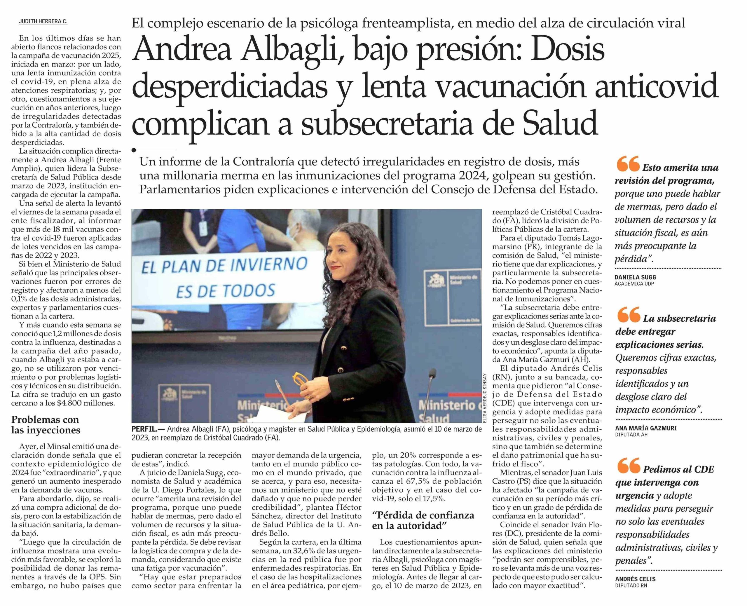 Daniela Sugg, académica de la FAE UDP, pidió revisar programa de vacunación en nota de El Mercurio