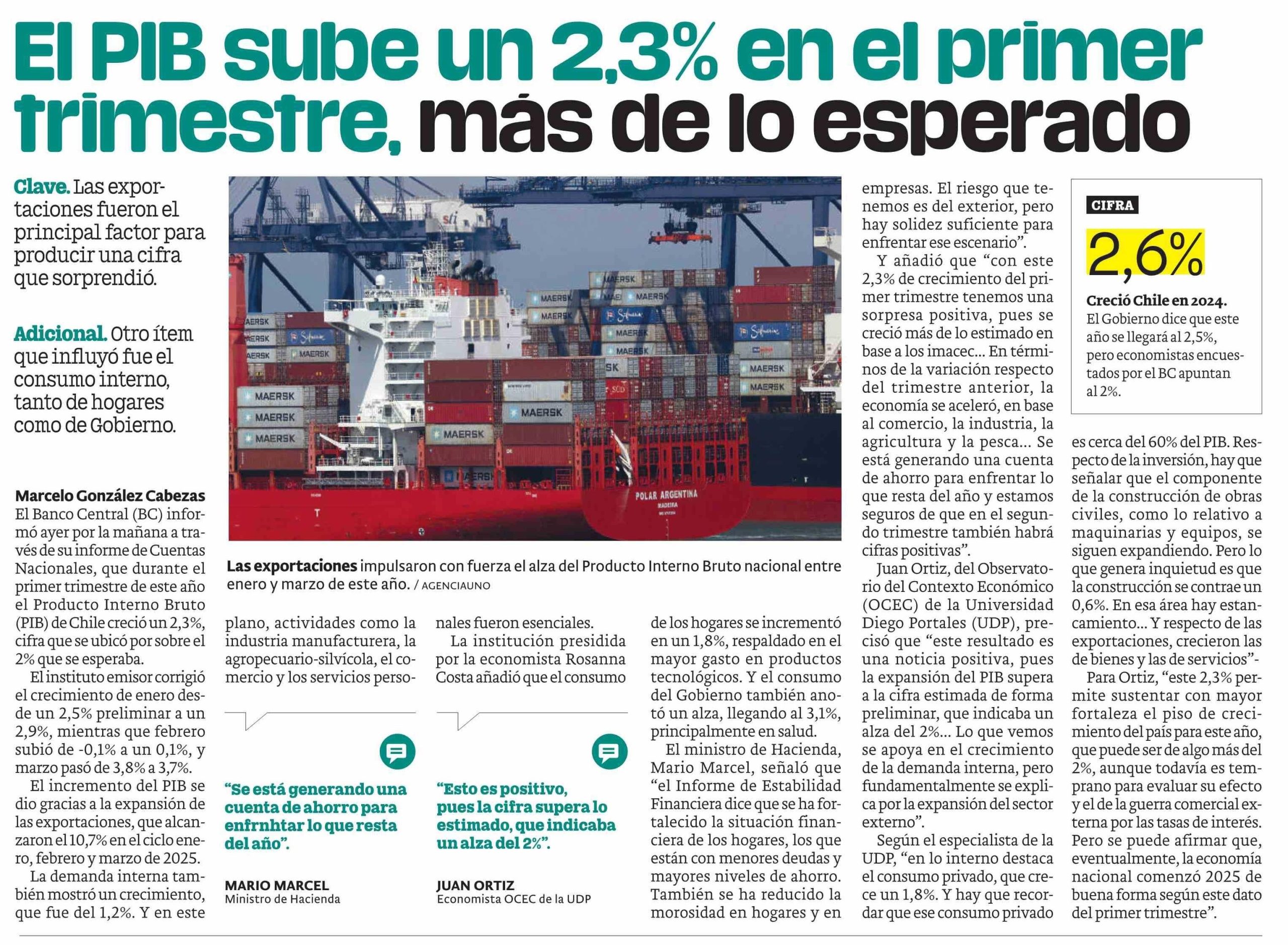Juan Ortiz analizó en Publimetro el crecimiento del PIB y destacó impulso del sector externo