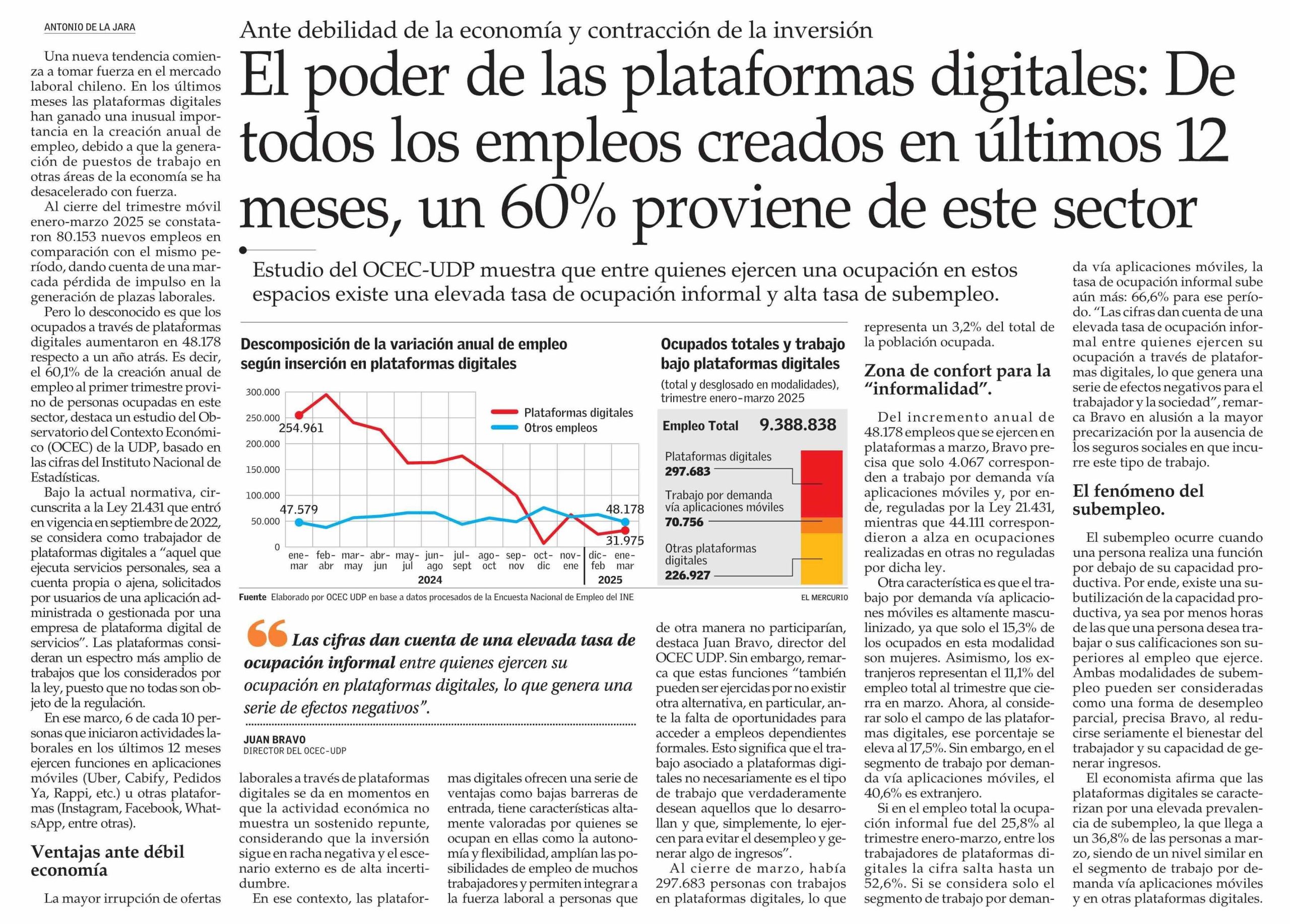 Informe del OCEC-UDP reveló que 60% de los empleos creados en el último año provino de plataformas digitales