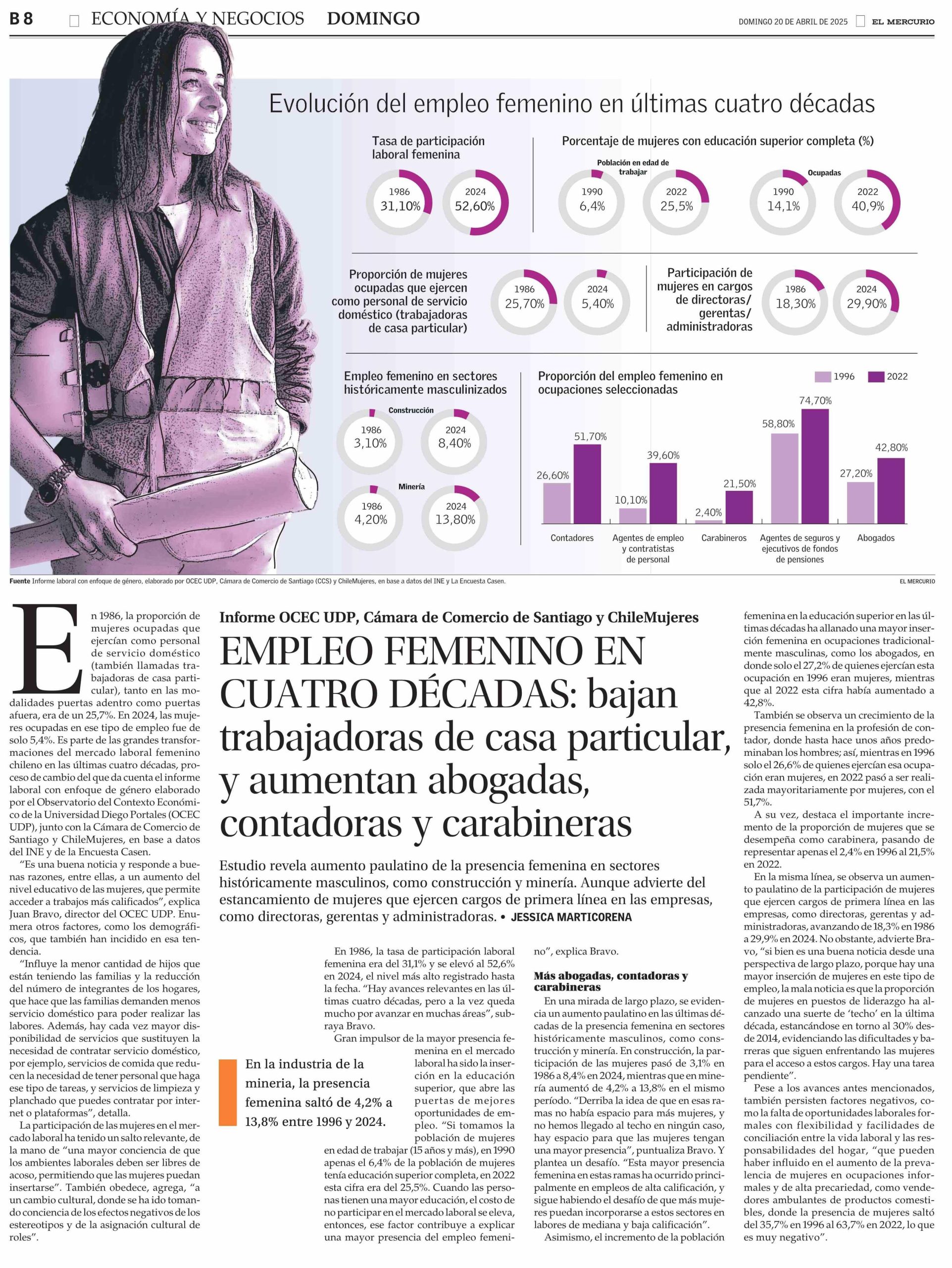 Estudio del OCEC UDP, sobre el empleo femenino, en nuevo Zoom de Género fue destacado por El Mercurio